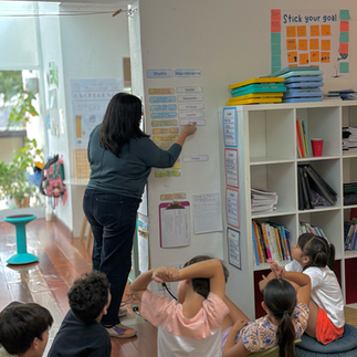 Como parte de nuestro tiempo de Quest, comenzamos a revisar algunos de los sistemas que nutren nuestro estudio en lo referente a independencia y colaboración. El primero fue 3B'sB4G (Book, Buddy, Brain before asking a Guide), que invita a los learners a confiar en sí mismos y en su comunidad antes de acudir a la guía, fomentando la autonomía y el pensamiento crítico.