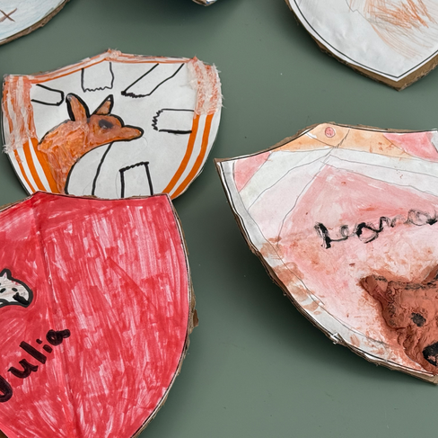 Los learners diseñaron y decoraron sus escudos con colores, símbolos y el animal que representa quiénes son y cómo brillan dentro del grupo. Esta actividad fortaleció su autoestima, su autoconocimiento y su sentido de identidad.