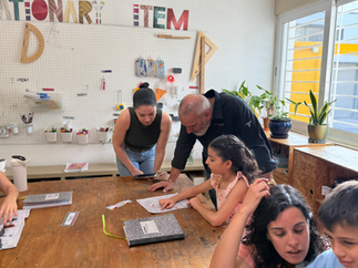 Cuando llegó el momento de montar la exhibición final, los learners mostraron mucha iniciativa. Participaron activamente acomodando mesas, sillas, carteles y materiales, tomando decisiones sobre cómo presentar su trabajo de la mejor manera.