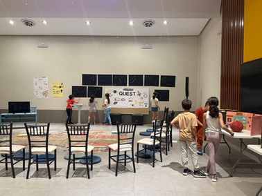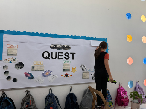 Posteriormente, las familias recorrieron las estaciones de Quest, donde pudieron observar los planetas, las nebulosas y los materiales informativos creados durante el proyecto.