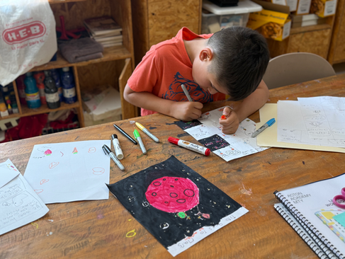 Al inicio de la semana, los learners tuvieron la oportunidad de cerrar el proceso de escritura de sus cómics con temática del espacio. Después de pasar por las etapas de brainstorm, pre-writing, draft y feedback, quienes ya habían completado el proceso pudieron enfocarse en los últimos detalles de su final copy.