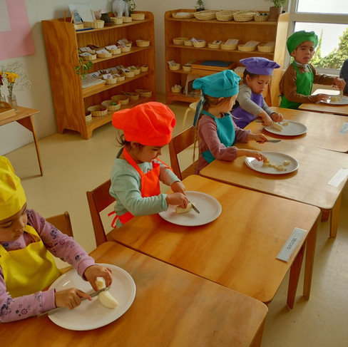 Después llegó el momento de practicar. Cada learner recibió un plátano y un cuchillo para seguir los pasos. Los chefs hacían preguntas mientras cortaban y los Wonders respondían con entusiasmo, demostrando que sí habían puesto atención.