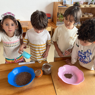 Cerramos la semana con un experimento que, esta vez, terminaría en algo que todos esperaban: comida para compartir. Pero antes de encender la estufa, comenzamos como siempre lo hacemos en nuestro ambiente Montessori: cuidando la vida.