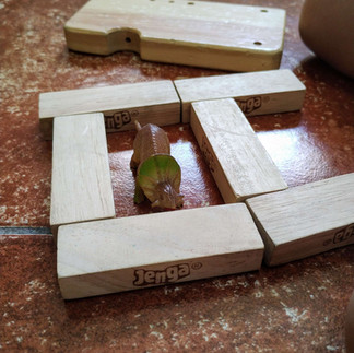 En esta actividad, los niños intentaron mantener pequeñas figuras de dinosaurios en equilibrio sobre bloques. Este reto divertido trabaja la motricidad fina, la coordinación ojo-mano, la planificación motriz y el pensamiento lógico. Además, les permite desarrollar la paciencia y la capacidad de prueba y error, esenciales en esta etapa.