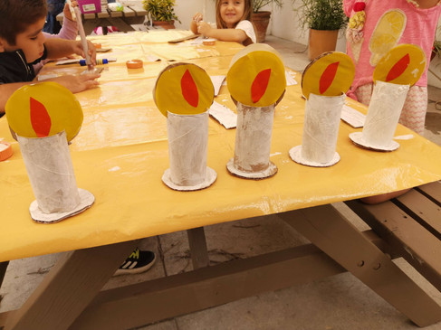 Esta semana, siguieron preparando su altar de Día de Muertos y ¡no faltó la diversión! Pintaron velas con tubos de papel, crearon mechas que parecen fuego con papel amarillo y naranja, y decoraron cruces con todo su entusiasmo.